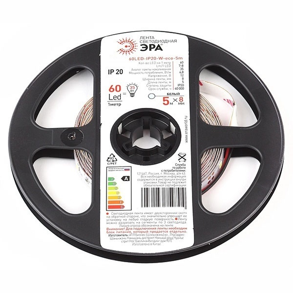 • Светодиодная лента ЭРА LS5050-14,4-60-12-6500K-IP20-2year-5m холодный белый 5056306064678