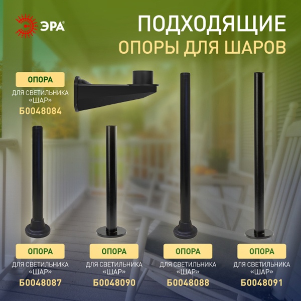 Уличный светильник на столб с рассеивателем в форме белого шара диаметром 350 мм, с цоколем Е27 мощностью 60 Вт, ЭРА НТУ Б0048046