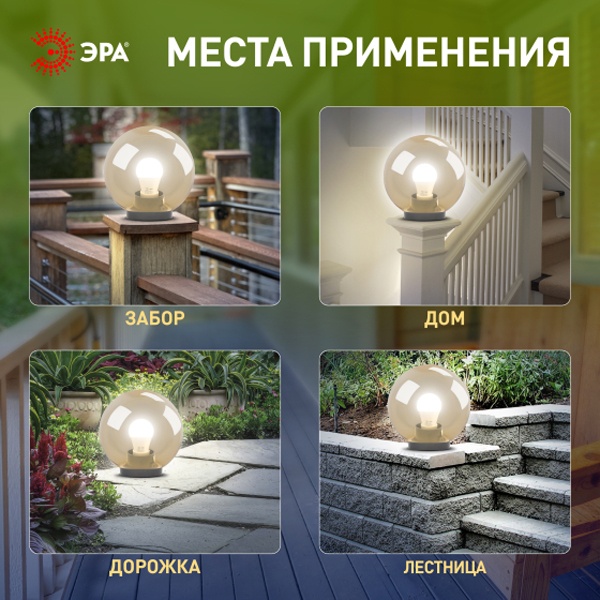 • Светильник садово-парковый ЭРА НТУ 01-100-353 шар золотистый D350mm Е27