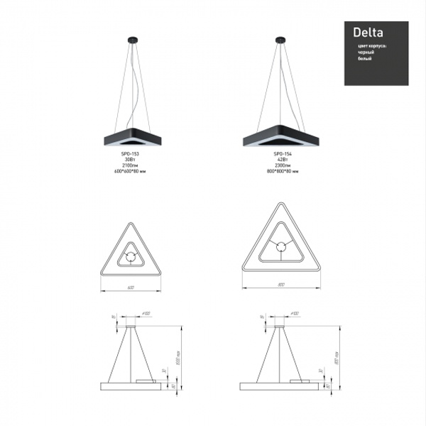 Осветительный LED прибор подвесного монтажа ERA Геометрия Дельта, треугольной формы, мощностью 42 Ватта, нейтральный белый свет, белого цвета Б0050580