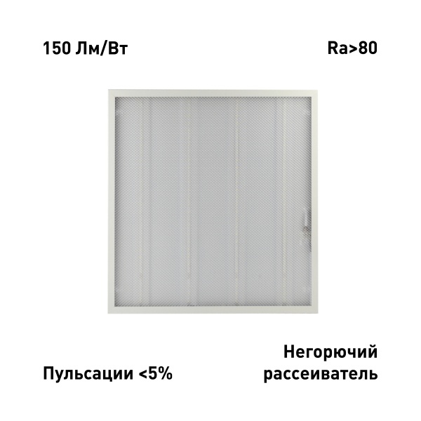 Светильники ЭРА SPO-6 соответствуют требованиям ГОСТ по электромагнитной совместимости светотехнического оборудования. Они не создают помех для работы электронных, цифровых и телекоммуникационных устройств. Рассеиватель выполнен из негорючего материала, что повышает безопасность эксплуатации. Размеры светильника — 595x595x19 мм. Подходит для установки в потолочные системы типа "армстронг", а также для накладного и подвесного монтажа. Встроенный драйвер обеспечивает полную готовность к подключению и работе.