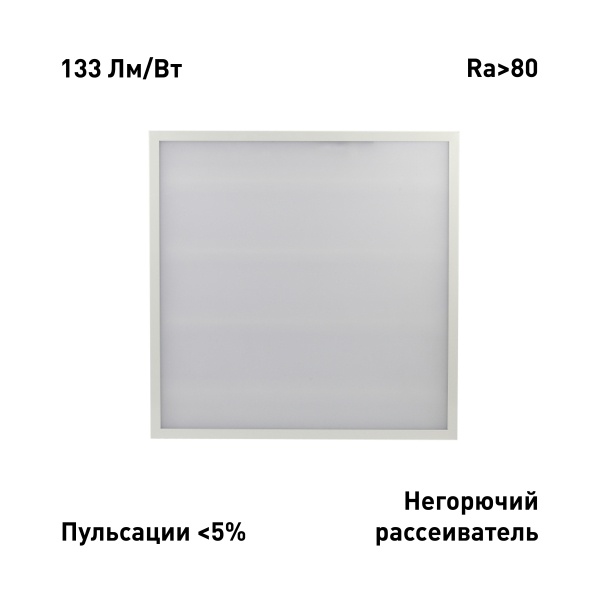 Светильники ЭРА SPO-6 соответствуют требованиям ГОСТ по электромагнитной совместимости светотехнического оборудования. Они не создают помех для работы электронных, цифровых и телекоммуникационных устройств. Рассеиватель выполнен из негорючего материала, что повышает безопасность эксплуатации. Размеры светильника — 595x595x19 мм. Подходит для установки в потолочные системы типа "армстронг", а также для накладного и подвесного монтажа. Встроенный драйвер обеспечивает полную готовность к подключению и работе.