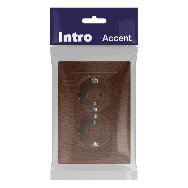Встраиваемая двойная электрическая розетка Интро Акцент с заземляющим контактом, цвет венге Б0063502