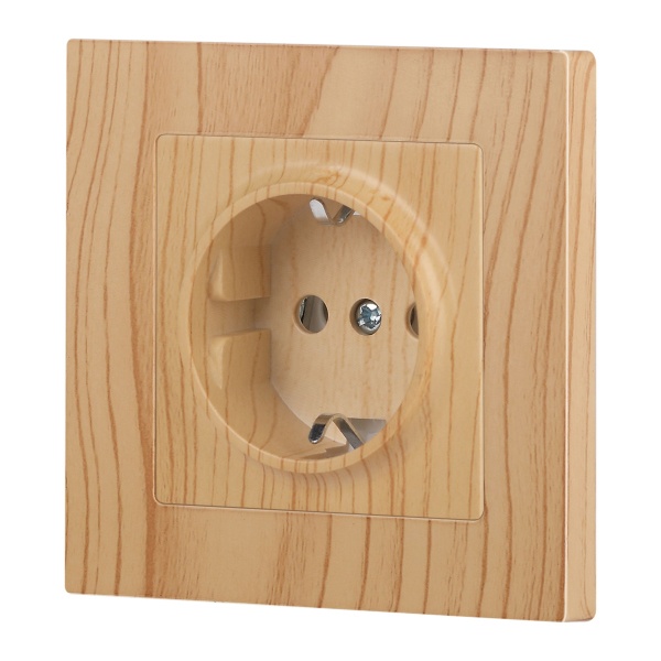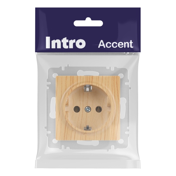 Встраиваемая электрическая розетка Интро Акцент с заземляющим контактом, цвет сосна Б0063706