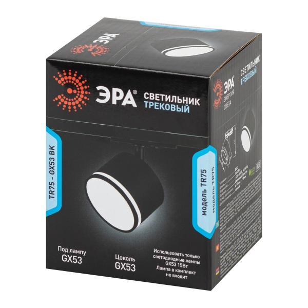 • Светильник трековый однофазный ЭРА TR75-GX53 BK под лампу GX53 c акриловым кольцом черный
