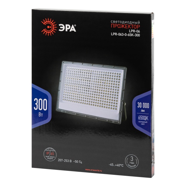 • Прожектор светодиодный ЭРА PRO LPR-063-0-65K-300 300W 6500K 30000Lm IP65 черный корпус алюминий