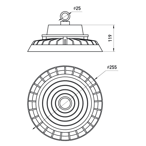 Светильник светодиодный промышленный мощностью 150 Ватт дневного света, подвесной для высоких пролетов Б0069334