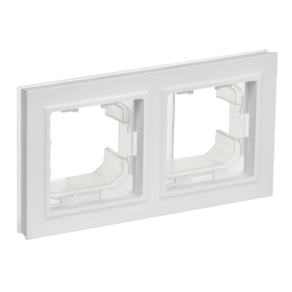 Пластиковое декоративное обрамление с силиконовой манжетой для повышения защиты от влаги и пыли, для двух электроустановочных механизмов скрытого монтажа IEK BRITE, арктический белый цвет BR-M22-44-K91