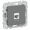 Механизм электрической розетки немецкого стандарта с повышенной защитой от пыли и влаги с защитными шторками и крышкой, лицевая панель цвета алюминий для скрытого монтажа, IEK BRITE. BR-R16-16-44-K47