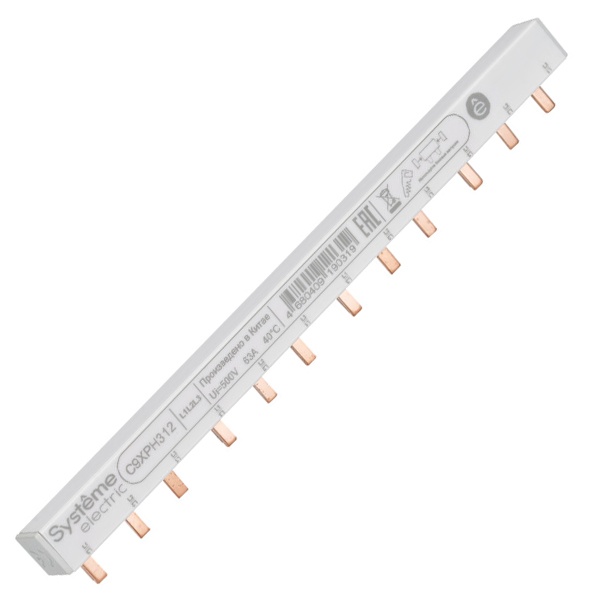 Трехполюсная штыревая гребенчатая шинка Систем Электрик шириной 12 модулей, номинальный ток 63 Ампера C9XPH312