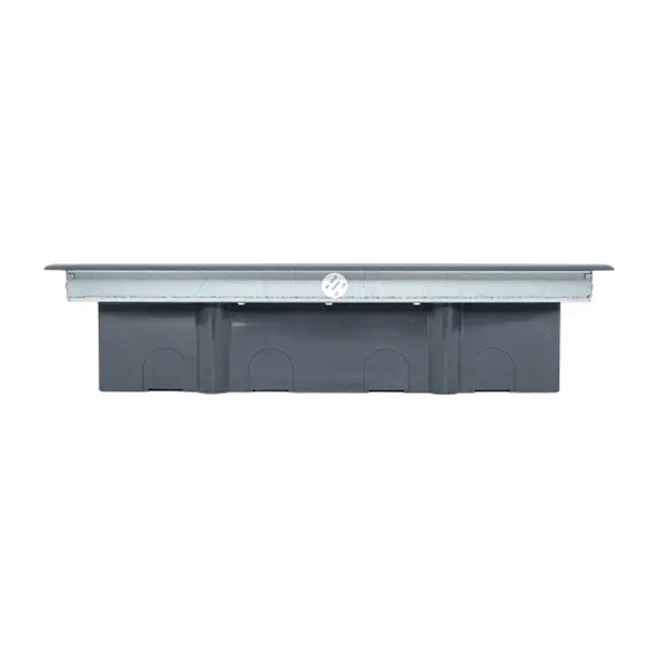 Напольный лючок под розетки — это прямоугольное устройство, предназначенное для компактной установки электрических и информационных розеток. Лючки могут монтироваться как самостоятельно в фальшпол, так и в сочетании с закладной коробкой, устанавливаемой при заливке бетонной стяжки. Конструкция лючка предусматривает ввод кабелей с пола и их вывод к потребителю через крышку. Внутри предусмотрены монтажные посты стандарта 45x45 для размещения различных типов розеток. Все лючки серии C-Line от EKF отличаются высокой прочностью и выдерживают нагрузку до 153 кг.