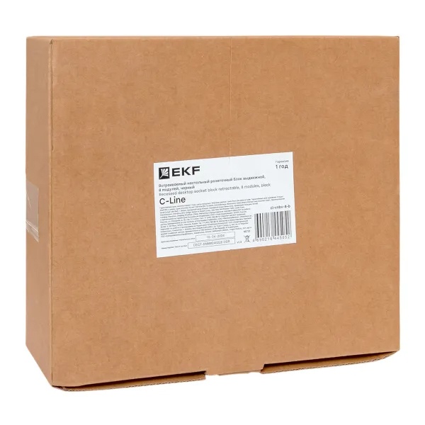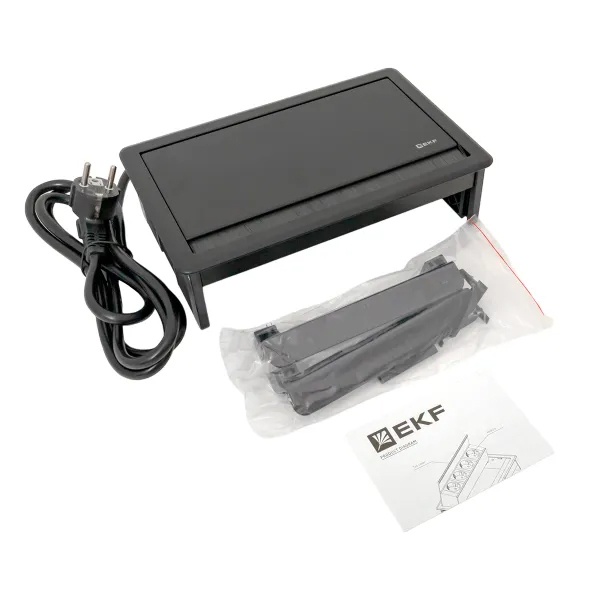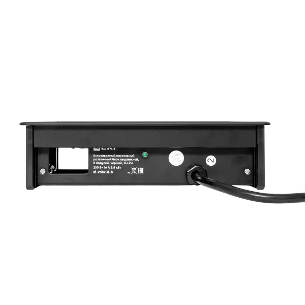 Встраиваемый прямоугольный выдвижной настольный розеточный блок на 8 модулей, цвет черный, EKF C-Line. cl-vnbv-8-b