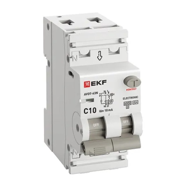 • Дифавтомат EKF PROxima АВДТ-63N 1P+N C10А 10мА тип А однофазный электронный 6кА (дифференциальный автомат, АВДТ)