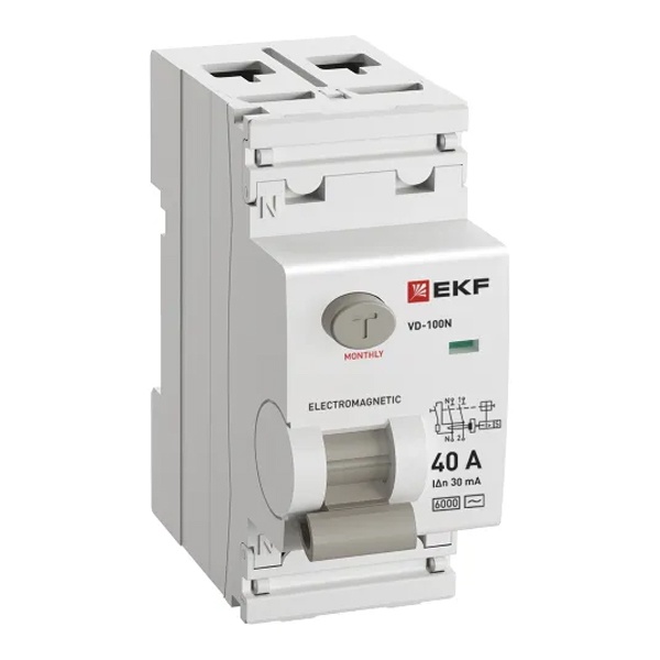• УЗО EKF PROxima ВД-100N 2П 40А 30мА тип AC 6кА (электромеханическое) (ВДТ)