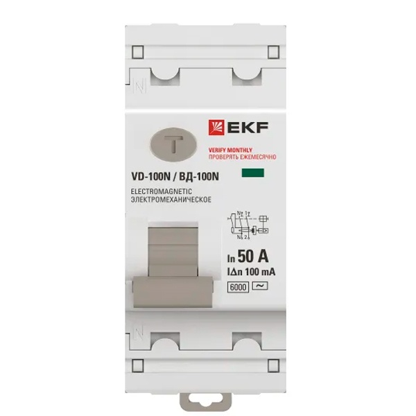 E1026M50100 УЗО EKF PROxima ВД-100N 2П 50А 100мА тип AC 6кА (электромеханическое) (ВДТ)