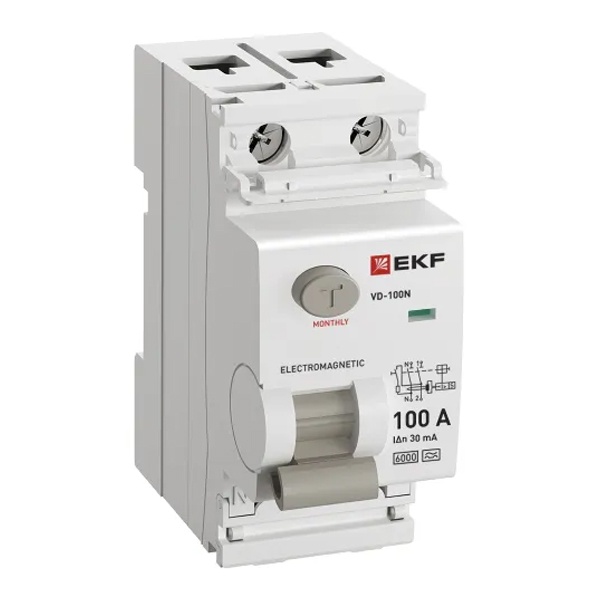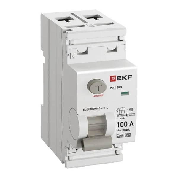 • УЗО EKF PROxima ВД-100N 2П 100А 30мА тип A 6кА (электромеханическое) (ВДТ)