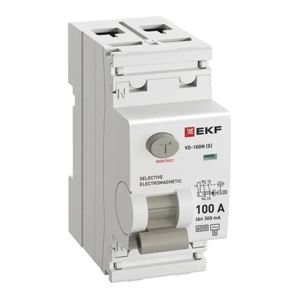 УЗО EKF PROxima ВД-100N (S) 2П 100А 300мА тип AC селективное 6кА (электромеханическое) (ВДТ)