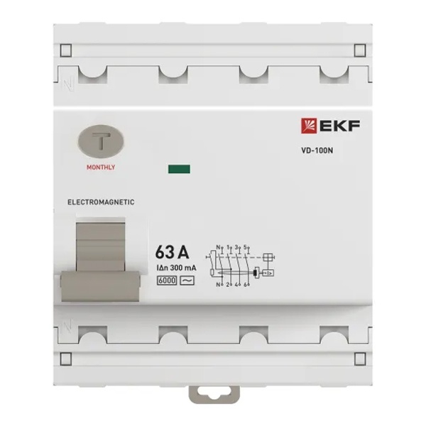 УЗО EKF PROxima ВД-100N 4П 63А 300мА тип AC 6кА (электромеханическое) (ВДТ)