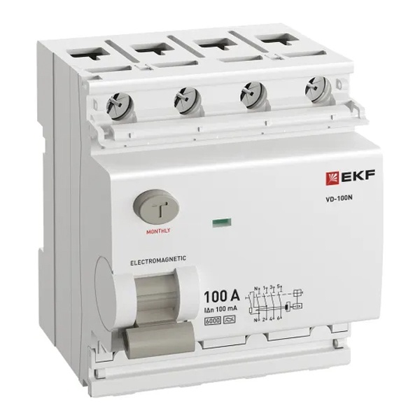• УЗО EKF PROxima ВД-100N 4П 100А 100мА тип A 6кА (электромеханическое) (ВДТ)