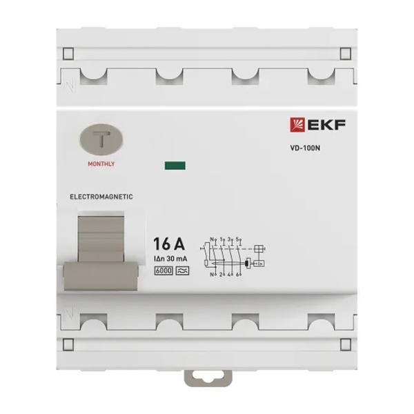• УЗО EKF PROxima ВД-100N 4П 25А 30мА тип A 6кА (электромеханическое) (ВДТ)