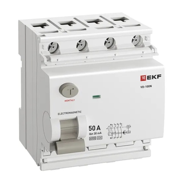 • УЗО EKF PROxima ВД-100N 4П 50А 30мА тип A 6кА (электромеханическое) (ВДТ)