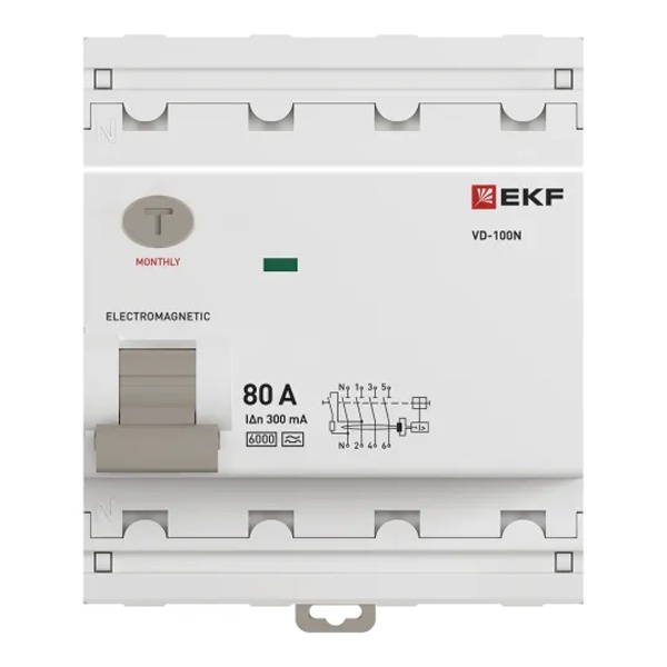 УЗО EKF PROxima ВД-100N 4П 80А 300мА тип A 6кА (электромеханическое) (ВДТ) E1046MA80300