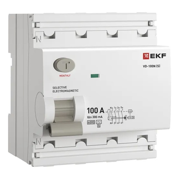УЗО EKF PROxima ВД-100N (S) 4П 100А 300мА тип AC селективное 6кА (электромеханическое) (ВДТ)