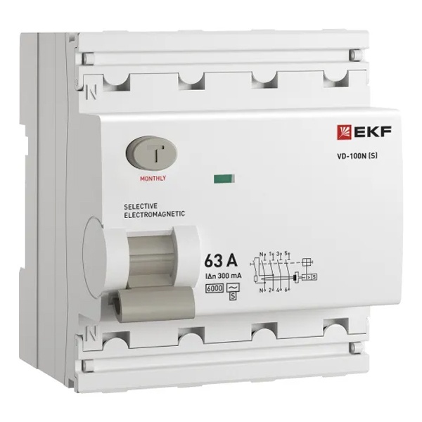 УЗО EKF PROxima ВД-100N (S) 4П 63А 300мА тип AC селективное 6кА (электромеханическое) (ВДТ)