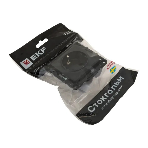• Механизм розетки EKF 2P+E 16А с защитными шторками Стокгольм черный