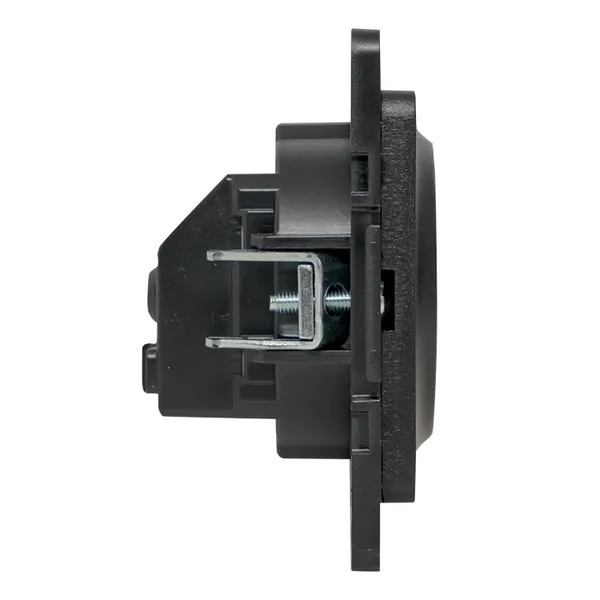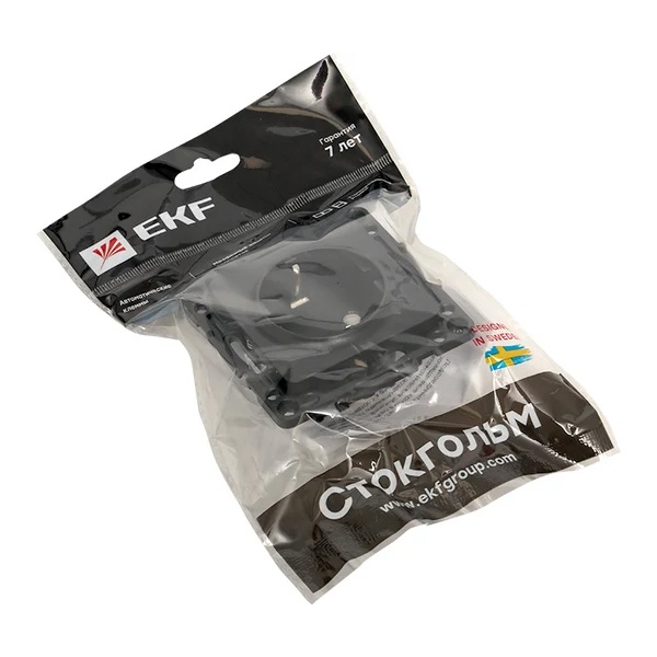 Механизм электрической розетки немецкого стандарта с защитой контактов и винтовым подключением для скрытой установки в сухих помещениях с накладкой черного цвета, ЕКФ серии Стокгольм. EZR16-028-20