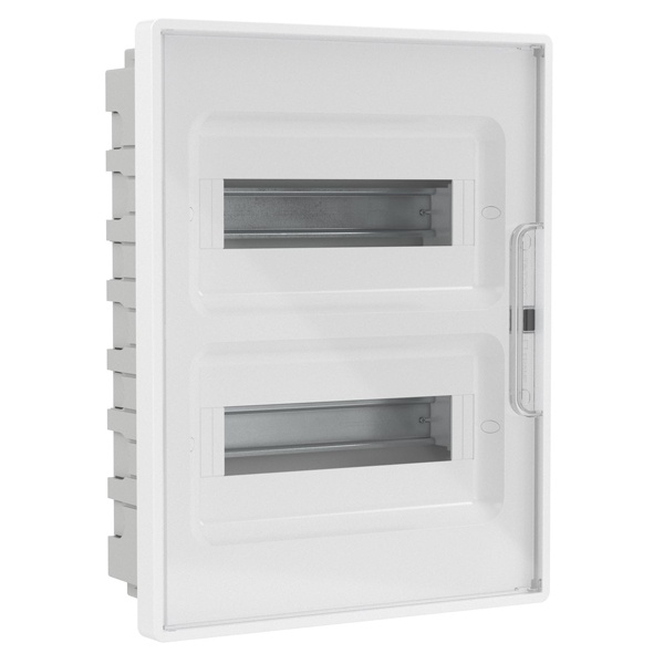 Пластиковый распределительный шкаф DKC Frame скрытой установки в пустотелые стены, два ряда 24 модуля, прозрачная дверь F24B3WT
