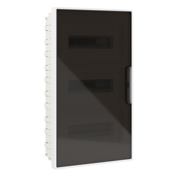 Пластиковый распределительный шкаф DKC Frame скрытой установки, три ряда 36 модулей, тонированая дверь F36B1WD