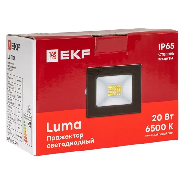 Прожектор светодиодный, влагозащищенный, мощностью 20 Ватт, холодный дневной свет, черный FLL-3002-20-6500