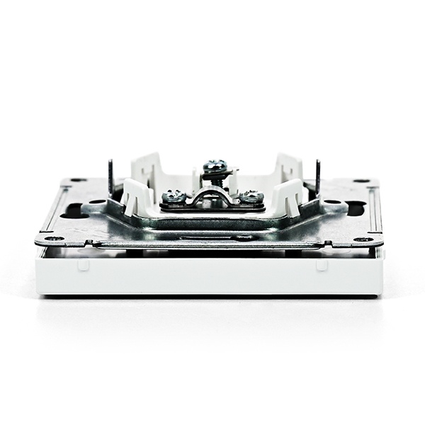 Лицевая панель данной телевизионной розетки изготовлена в стиле классического дизайна - это четкие прямые линии и углы, образующие квадрат, в центре которого располагается разъем для подключения телевизионного приемника.