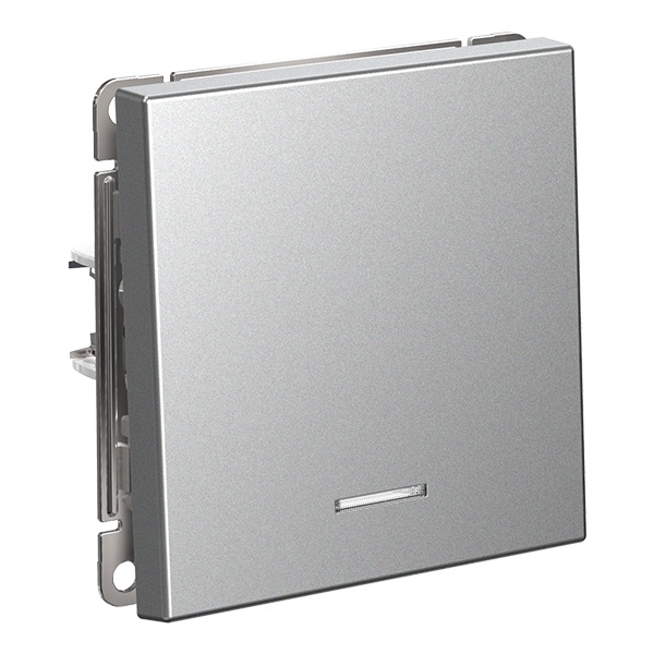 Встраиваемый кнопочный выключатель АртГеллери алюминиевого цвета с индикацией, Систем Электрик GAL000316