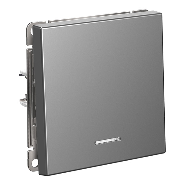 Встраиваемый кнопочный выключатель АртГеллери стального цвета с индикацией, Систем Электрик GAL000916