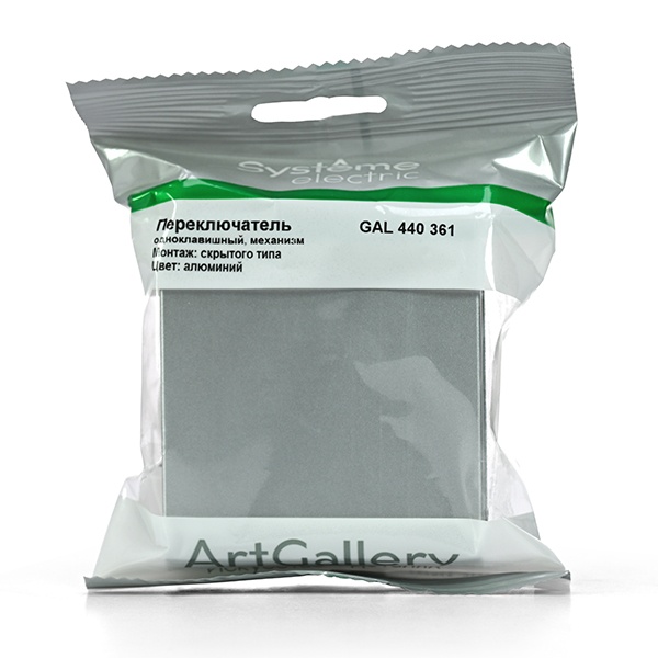 Проходной 1-клавишный встраиваемый выключатель света АртГеллери цвета алюминий Систем Электрик IP 44 GAL440361