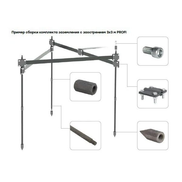 Для организации защитного заземления электроустановок и оборудования, а также установки заземления молниезащиты используется комплект заземления торговой марки EKF. Особенностью данного набора является наличие заострения на штыре и дополненная улучшенная комплектация.Комплект включает в себя:- 3 штыря заземления длиной 150 см и диаметром 1.6 см с заострением. Они предназначены для прямого электрического соединения с землей и выполнены из стали с защитным покрытием;- 3 штыря заземления длиной 150 см и диаметром 1.6 см с соединением муфта-муфта;- 3 соединительные муфты диаметром 1.6 см, необходимые для соединения штырей, а также для их защиты от механических повреждений;- гайка переходная с внутренней резьбой и диаметром 1.6 см;- ударный винт М16х25 для защиты штыря от ударной нагрузки при монтаже;- насадка SDS MAX для забивки стержней заземления;- 7 зажимов: штырь-полоса-прут, которые представляют собой стальные пластины на 4 болтах, обеспечивающие соединение штырей с круглыми и плоскими проводниками;- 3 стальных полосы размером 4х40 мм и длиной 150 см с горячеоцинкованным покрытием;- электропроводящая смазка ЭПС-98 объемом 40 г для нанесения на соединения;- антикоррозийная лента длиной 10 м с шириной 5 см для защиты соединений;Монтаж заземляющего комплекта может производиться одним человеком с помощью ручного или электрического ударного инструмента. Оцинкованное покрытие изделий обеспечивает им продолжительный срок службы и защищает от коррозии. Штыревая система заземления универсальна и используется снаружи зданий и в подвальных помещениях.