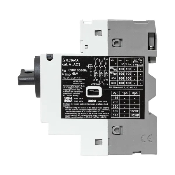 • Диапазон уставки тока расцепления: 0,63-1 A
