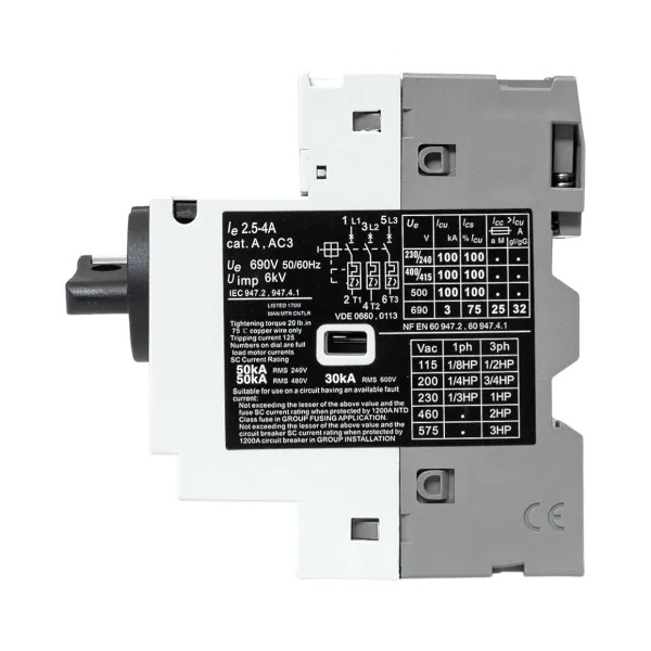 • Диапазон уставки тока расцепления: 2,5-4 A
