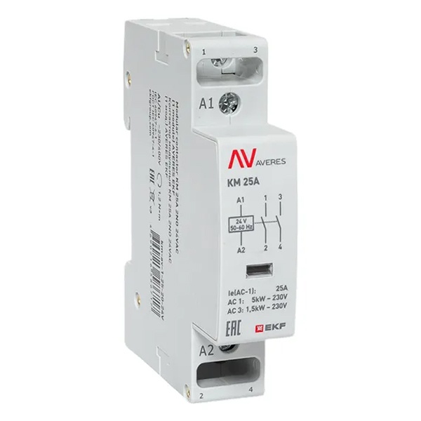 Контактор модульный EKF Averes КМ 25А 2NO 24В AC 1 модуль km-av-1-25-20-24V