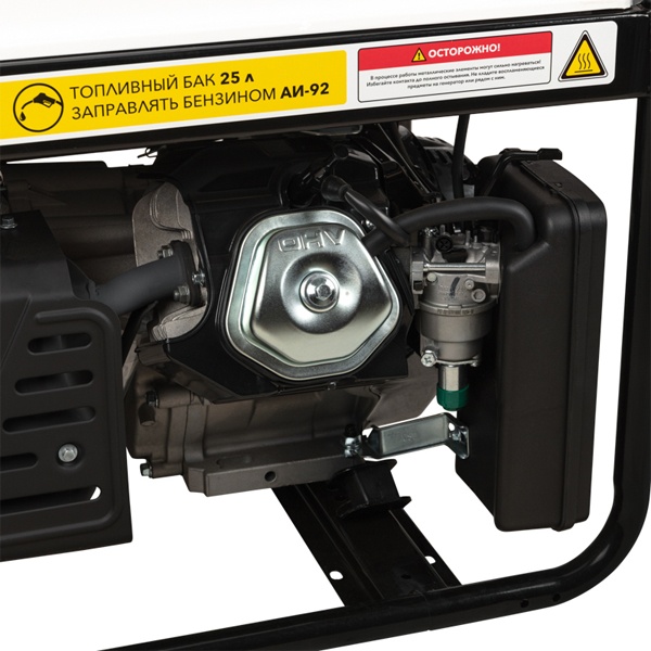 Генератор работает на бензине марки АИ-92, что делает его удобным в эксплуатации и обслуживании.