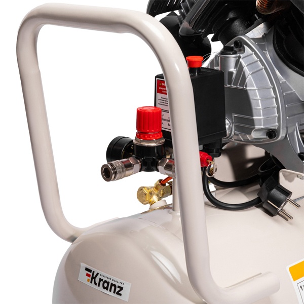 Автоматическая работа устройства обеспечивается пневмоэлектрическим выключателем, реагирующим на уровень давления. Сменный воздушный фильтр защищает рабочие узлы от загрязнений и износа.