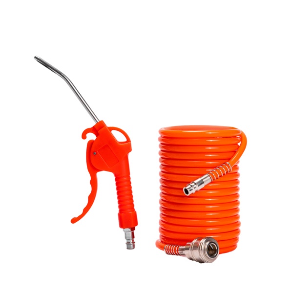 В комплекте: спиральный пневмошланг длиной 5 м с быстросъемом и продувочный пистолет.