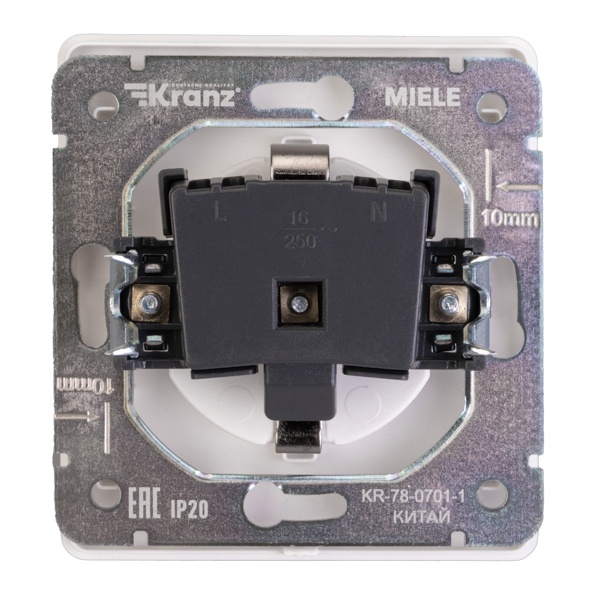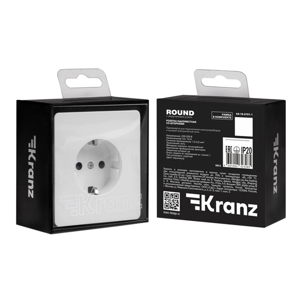 Розетка поставляется с прочной и элегантной рамкой Kranz, выполненной из износостойких материалов. Её универсальный стиль гармонично вписывается как в классические, так и в современные интерьеры.