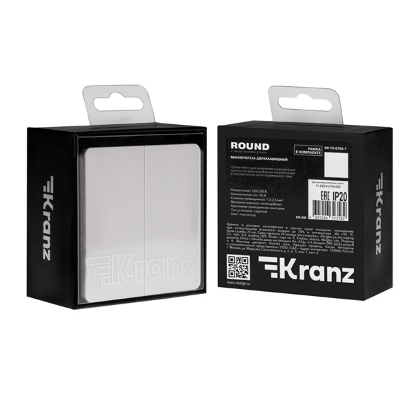 • Выключатель двухклавишный Kranz Miele Round 10А с рамкой перламутр