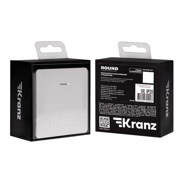 KR-78-0713-1 Выключатель одноклавишный с подсветкой Kranz Miele Round 10А с рамкой перламутр