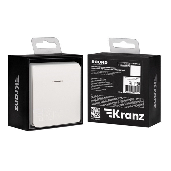 Встраиваемый 1-клавишный проходной выключатель Kranz Miele Round с подсветкой, цвет перламутр KR-78-0716-1