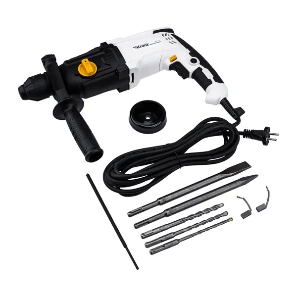 Сетевой перфоратор — это надежный инструмент, предназначенный для бурения отверстий и дробления строительных материалов различной плотности, включая бетон, кирпич и камень. Питание от электросети обеспечивает стабильную и непрерывную работу без необходимости подзарядки, что особенно важно при продолжительных задачах.