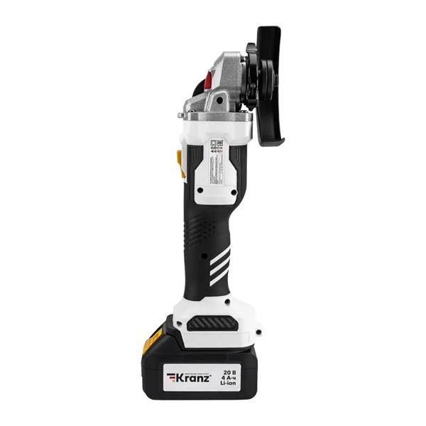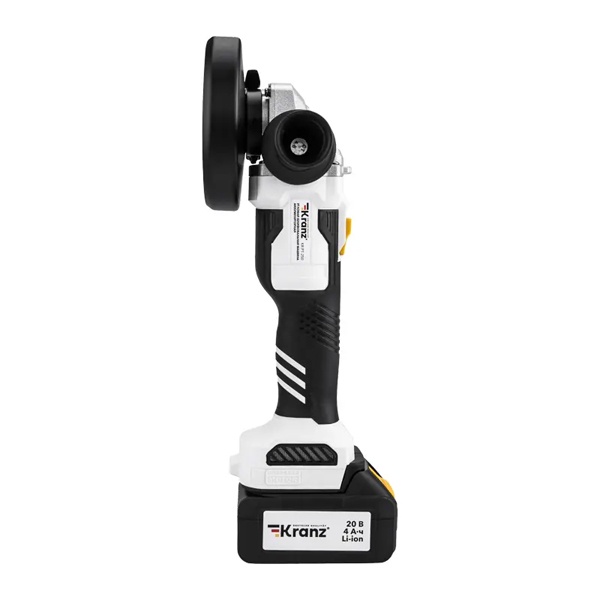 Для удобства эксплуатации УШМ оснащена встроенным аккумулятором, что делает её портативной и позволяет работать вдали от розеток. Блокировка шпинделя обеспечивает быструю и безопасную замену дисков или насадок. Наличие фиксируемой кнопки включения снижает нагрузку на руки и повышает комфорт при длительном использовании.